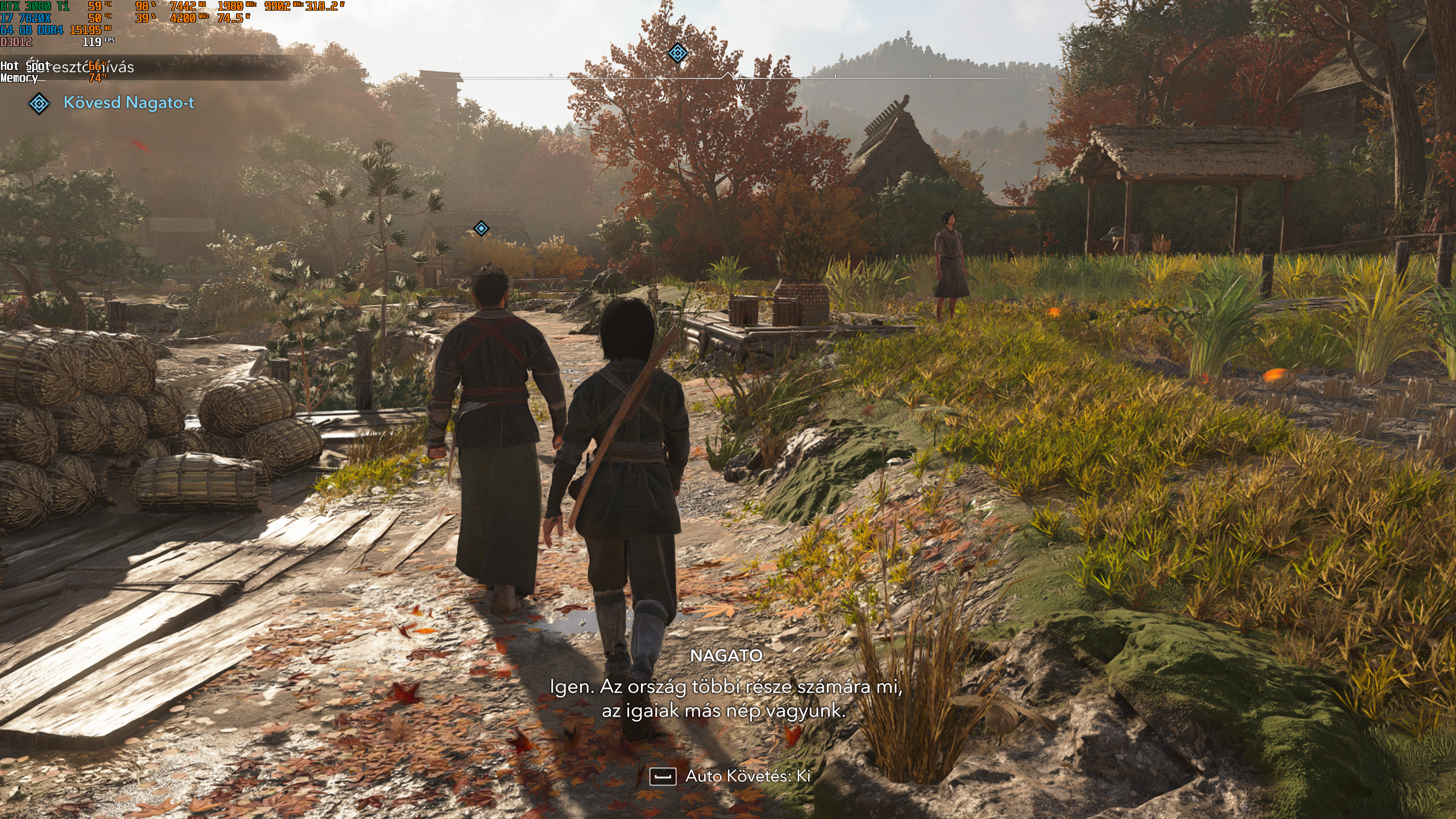 Attól tartottam, hogy Naoe után Yasuke bőrébe bújni fura lesz vagy akár csalódás is, de egyáltalán nem ez a tapasztalatom. Kurwa jó az ő karaktere is! Nem is akarok egyelőre vissza váltani, de a játék kényszerít - vannak objective-ek, amiket csak Yasuke vagy csak Naoe tud megoldani, illetve olyan is, amit félig Yasuke, de befejezni Naoeval lehet csak. Vannak viewpontok, amiknek megüléséhez is karaktert kell váltani, mert Yasukenak vertikális haladása erősen limitált. De ennek ellenére is nagyon érdekes őt irányítani.